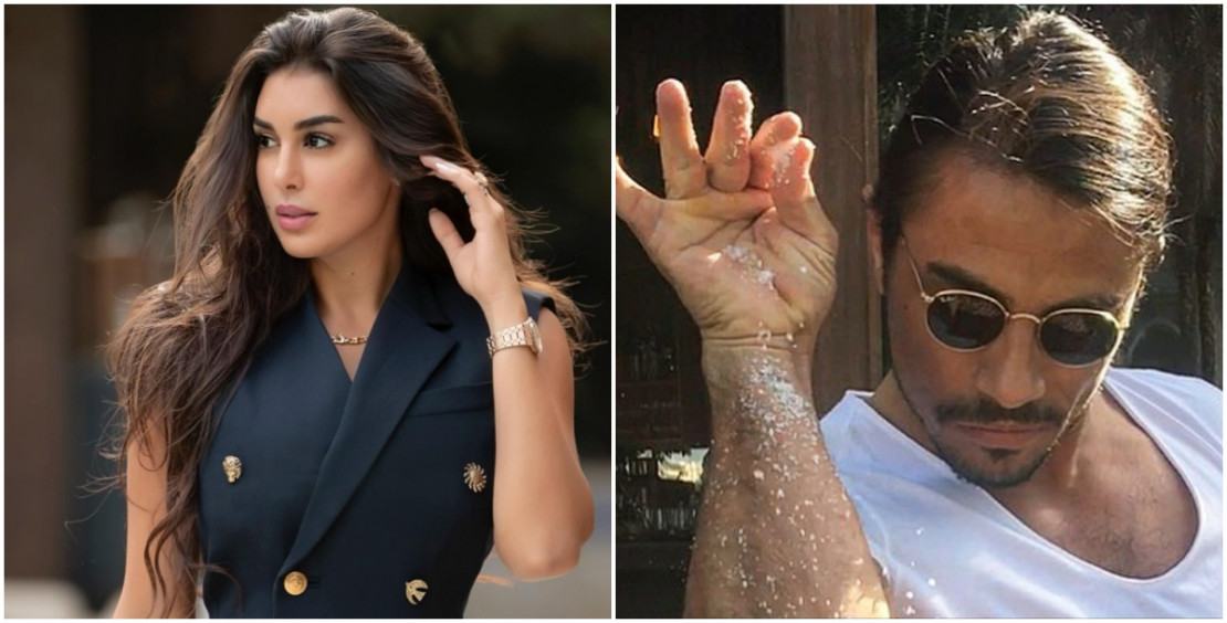 ووثّق الفيديو لحظة تقطيع الشيف التركي اللحم على طريقته الخاصة ورشة الملح بالطريقة التي اشتهر بها، فيما كانت تبدو على