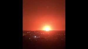 وتناقلت مواقع التواصل الاجتماعي مقاطع فيديو من مكان الحادث، أظهرت انفجارا ضخما.