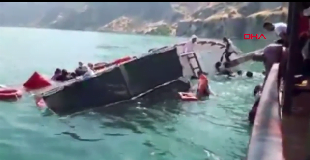 أظهر مقطع فيديو لحظات غرق سفينة سياحية قبل يومين في بحيرة سد بيرجيك بنهر الفرات في منطقة هالفتي في مدينة شانلي أورفة.