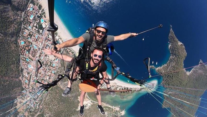 وبدأ المغني “يرلي قايا” في رحلته الجوية مع المظلي المحترف “سلجوق فداكار تورك”، منطلقاً من منحدر “باباداغ” الذي يرتفع عن سطح البحر حوالي 1700 مترا، في قضاء “فتحية” في ولاية موغلا.
