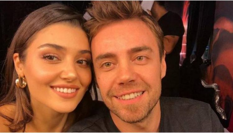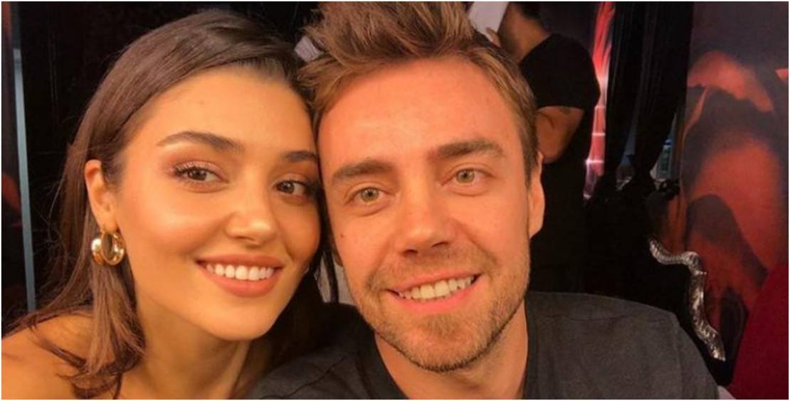 هاندا آرتشيل وزميلها كرم بورسين خلال لقاءاتهما في كواليس تصوير مسلسلهما ، وبعد أن تم تداول مشهد القبلة الذي جمعهما في
