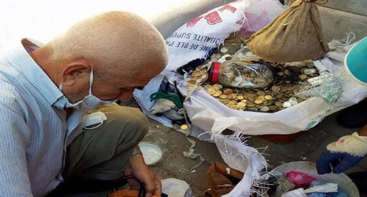وحصل على بعض الأوراق النقدية من خلال عمله في التسول في الشوارع بعد وفاة زوجته منذ ثلاث سنوات.