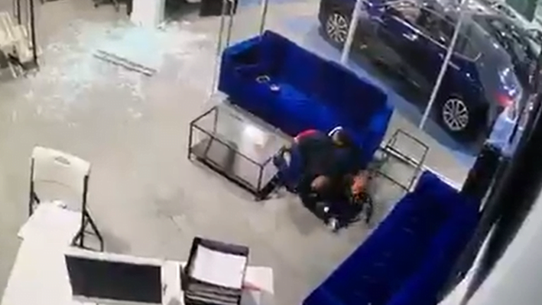 أظهر فيديو لحظة صد أب الرصاص عن أطفاله الثلاثة بجسده بعد وقوع إطلاق نار بشكل مفاجئ داخل معرض لبيع السيارات في منطقة برونكس بمدينة نيويورك الأمريكية.