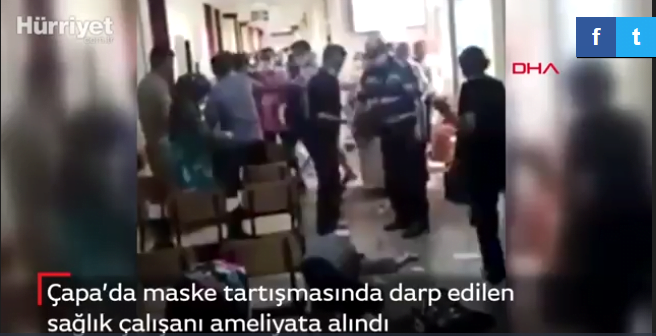 اعتدى شخص صباح اليوم على موظف لدى الطاقم الطبي في مستشفى تشابا بمنطقة الفاتح في اسطنبول، أثناء تحذيره لارتداء القناع الواقي على نحو سليم.