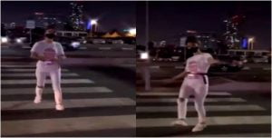 وبين المقطع أن الفتاتين هما شقيقتان، كانتا تتمتعان بوقتهما ترقص في وسط شارع في أبوظبي، فطلبت إحداهن من الأخرى أن تمارس الرقص في وسط الشارع فقالت لها “بدي أتحداكي ترقصي بنص الطريق”، وهو ما فعلته شقيقتها التي كانت ترتدي قميصًا وبنطلونًا ذات اللون الأبيض اللون بالإضافة إلى كمامة سوداء.