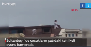 انقطعت أنفاس المواطنين أثناء مشاهدة طفلين يلعبان فوق سطح أحد المباني السكنية في منطقة سلطان بيلي بإسطنبول.