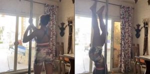 وهي تمارس التمارين الرياضية سقطت أرضاً ثم بعد ذلك نجحت في التجربة.