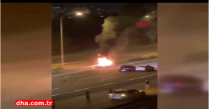 اصطدمت إحدى المركبات التابعة لموكب الزفاف في أنقرة بسيارة أخرى وشاحنة على الطريق واشتعلت فيها النيران إثر الاصطدام.