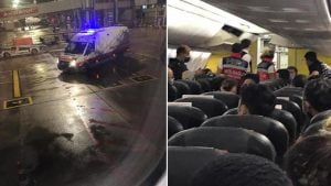 ولفتت الى ووقوع بعض الإصابات بسبب اهتزاز الطائرة عدة مرات بفعل العواصف”.