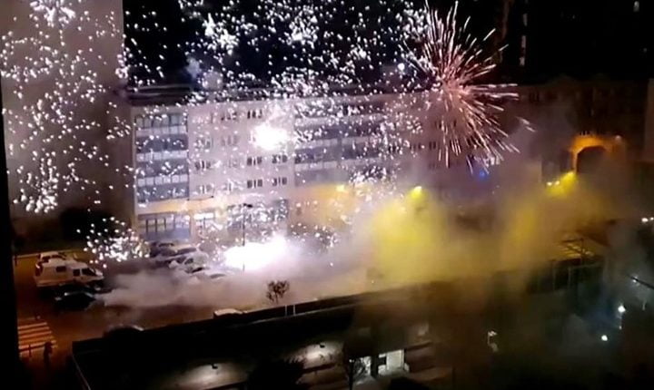 وتظهر مشاهد، تداولها فرنسيون عبر مواقع التواصل الاجتماعي، إطلاقا كثيفا للمفرقعات على مقر الشرطة، وإصابة مدخله ونوافذه بالعديد منها.