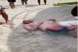 ويُظهر مقطع فيديو نشرته قناة “فوكس نيوز”، أحد المسعفين وهو يقوم برعاية مارك، الذي ظهر يتلوى من الألم على الشاطئ، بينما يتدفق الدم من ساقه اليمنى.