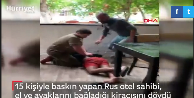 تعرض مدير فندق يدعى أورهان كابلان (27 عامًا)، للضرب من قبل مالك الفندق “روسي الجنسية” و15 فرداً اخرين من المجموعة. داخل منتجع أوليمبوس السياحي في أنطاليا.