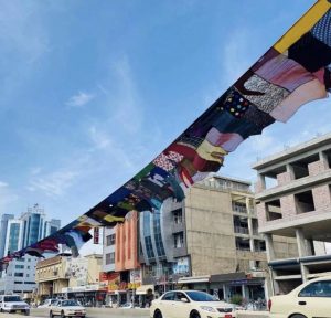 وتداول الناشطون صوراً لـ”حبل الغسيل” الغريب الذي اخترق قلب المدينة، مروراً بأحد أهم الجسور والشوارع التجارية الرئيسية.