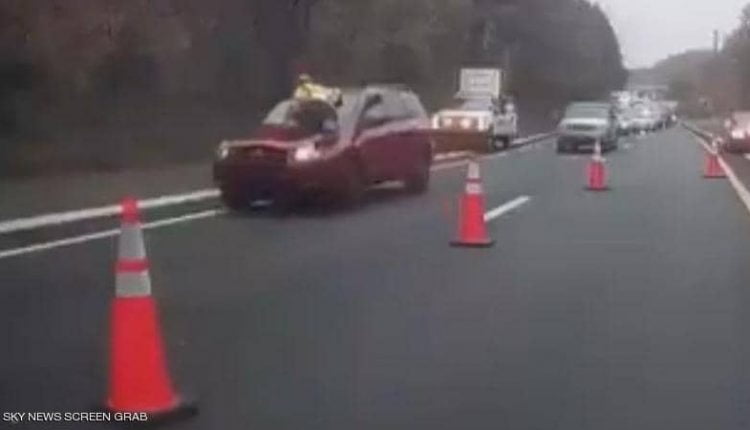 كما ويُظهر التسجيل المصور، الذي نشرته وزارة النقل بولاية نيويورك، على حسابها في “تويتر”، الاثنين الماضي. عاملا في دورية محلية للطوارئ على الطريق السريع يحاول توجيه حركة المرور في مكان وقوع حادث.