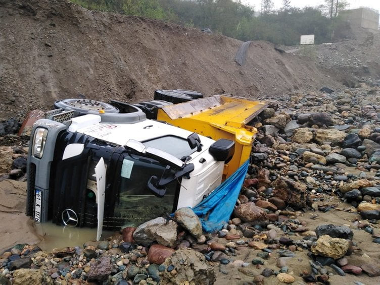 وقالت المصادر، وفق ترجمة تركيا الان، إن التيار جرف جميع المركبات وآلات العمل التابعة لموقع البناء في الفيضان.