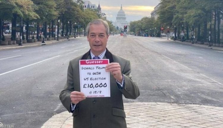 وكان فاراج نشر صورة له على حسابه في موقع تويتر، وهو يحمل لافتة تعرض رهانا بقيمة 10 آلاف جنيه. في واشنطن العاصمة مع مبنى الكابيتول في الخلفية مع إغلاق صناديق الاقتراع في 3 نوفمبر، وأعلن أنه “متفائل تماما” بالفوز.