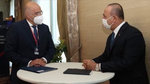 فاجأ وزير الخارجية التركية مولود تشاووش أوغلو نظيره اليوناني نيكوس ديندياس بعد أن دخل الأخير الحجر الصحي الاحترازي.