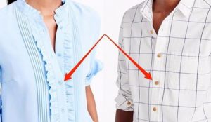 تقريبا، يوجد بكل قميص رجالي وبلوزة نسائية أزرار لقفل الثوب، وتكون أزرار قمصان الرجال عادة في الجهة اليمني أما أزرار البلوزات فتكون على الجانب الأيسر. فلماذا هذا الاختلاف؟