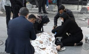 بينما هرع المسعف لمساعدة الشاب الذي تعرض للحادث في اسطنبول ، انفجرت والدته بالبكاء بعد تلقيها النبأ المفجع.