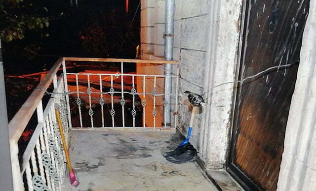 وعند وصولها إلى مكان الحادث ، لاحظت الشرطة وجود قنبلة معلقة على باب المنزل.