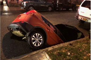 عثر على سيارة دفع رباعي برتقالية ابتلعتها حفرة في نيويورك في وقت مبكر صباح الخميس.