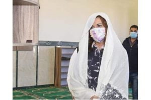 بالصور.. وزيرة مسيحية تحضر صلاة الجمعة داخل مسجد في مصر