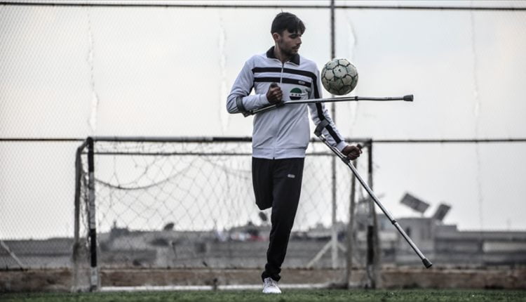 محمد عثمان، شاب سوري من ذوي الإعاقة يعيش بمحافظة إدلب السورية (شمال غرب)، فقد إحدى ساقيه نتيجة إصابته بمرض السرطان، لكنه أصر على ممارسة كرة القدم رغم الإعاقة وظروف الحرب في بلاده.