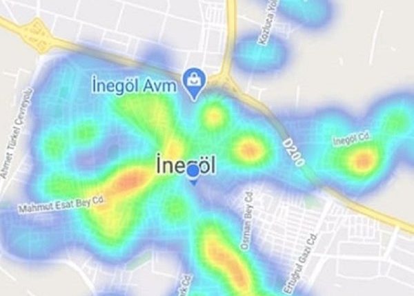 أظهرت خريطة المخاطر فرق كبير في الارتفاع اليومي لعدد الإصابات بفيروس كورونا  ، في  منطقة إينيجول في بورصة ، بعد مقارنة عدد الحالات قبل ثلاثة أشهر .