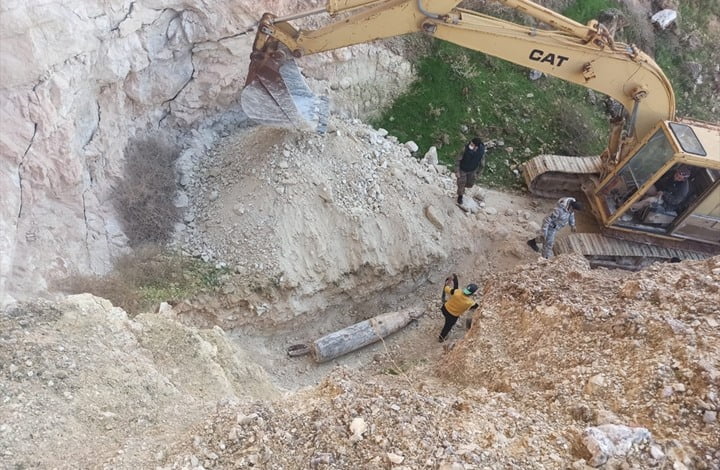 وأشارت الوزارة في بيانها، إلى أن تم العثور على القنبلة خلال أعمال حفر في وسط مدينة الباب. وتم اكتشاها على عمق 5 أمتار تحت الأرض.