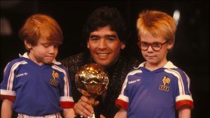 وتوج مارادونا بجائزة “الكرة الذهبية لأفضل لاعب في كأس العالم. بعد أن قاد منتخب الأرجنتين إلى الفوز بلقب بطل العالم في مونديال المكسيك عام 1986، ولكنه لم يفز بـ”الكرة الذهبية” التي تمنحها المجلة الفرنسية الشهيرة “فرانس فوتبول”. الجائزة السنوية لأفضل لاعب في العالم، لأن المنافسة عليها كانت منحصرة بين اللاعبين الأوروبيين وحدهم في تلك الفترة.