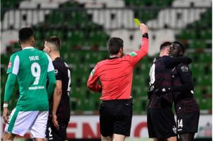 لكن عندما التفت للاحتفال مع زملائه في الفريق، واجهه المهاجم الغاضب ديفي سيلك من بريمن، قبل أن يلوح الحكم ببطاقة صفراء بسبب ما اعتبر “سلوكًا غير رياضي”.