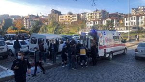 تدهورت حالة سائق في طرابزون بشكل مفاجئ أثناء قيادته حافلة صغيرة لنقل الركاب، وفقد السيطرة عليها؛ فدهست مشاة، ثم ارتطمت بمركبات.