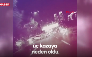 تسبب سائق في ثلاثة حوادث سير متفرقة بعد إجرائه حركات بهلوانية على الطريق السريع في ساعة الذروة في العاصمة أنقرة.
