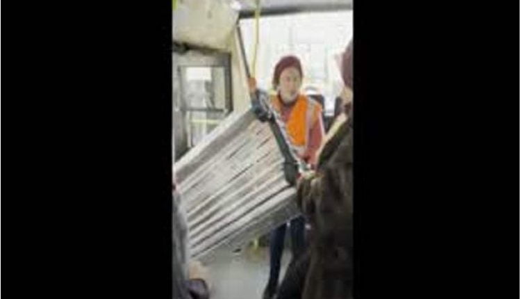 وبحسب الفيديو تظهر المرأة وهي تحمل المقعد وتدخله إلى الباص بينما تحاول عاملة إيقافها وإقناعها بإخراج المقعد.