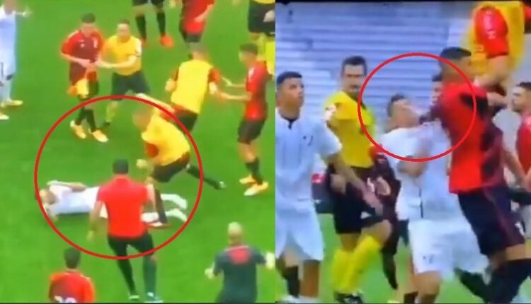 ونشب شجار بين لاعبين اثنين في الوقت الإضافي من زمن اللقاء. وسرعان ما تحول إلى شجار جماعي طاحن بين لاعبي الفريقين.
