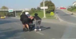 وأظهرت وسائل إعلام، وفق ترجمة موقع “تركيا الآن”، مشهد طفلين يرتديان أحذية التزلج على طريق بيالا باشا في شيشلي بينما كانا يمسكان بدراجة نارية من الخلف، على الطريق السريع.
