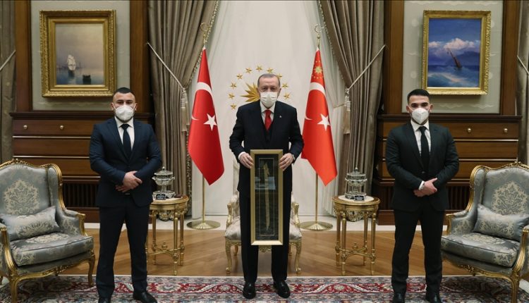 وجرى اللقاء بين أردوغان والشابين رجب طيب غولتكين، وميكائيل أوزن، في المجمع الرئاسي بالعاصمة أنقرة.