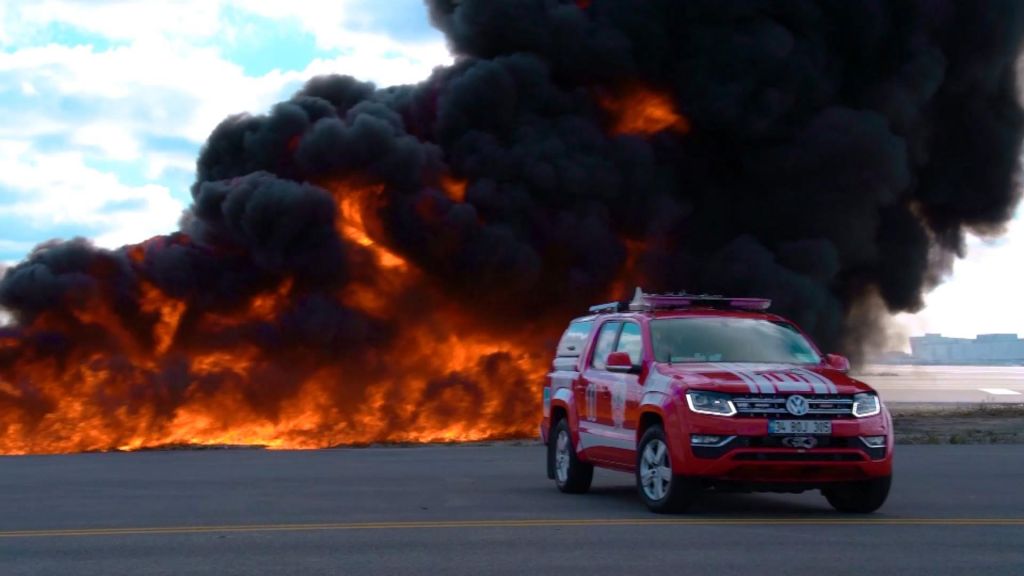 أجرت إدارة مطار اسطنبول الكبير تدريبات واسعة النطاق على إخماد حريق في طائرة ركاب مدنية، ولم يكن بالإمكان- للوهلة الأولى- تفريق التدريب عن الحقيقة.