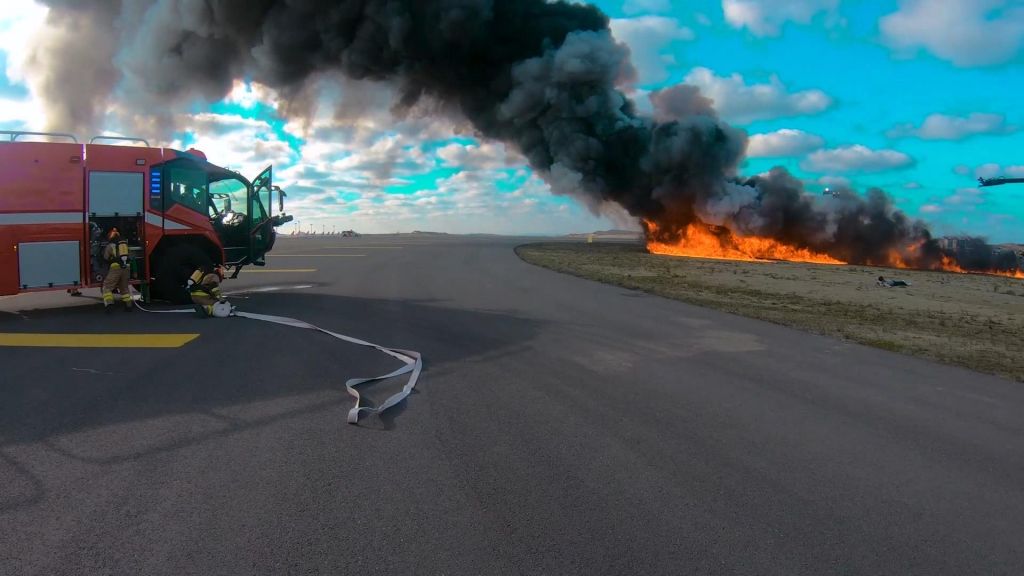 ووفقًا للسيناريو الذي نفذ أثناء التدريبات في مطار اسطنبول، اندلع حريق كبير إثر اصطدام الجناح الأيسر لطائرة ركاب من طراز Airbus 321 بالأرض، بعد فشلها في إنزال العجلات أثناء هبوطها.