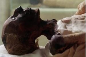 واضاف بيتاني هيوز وهي تقف أمام المومياء المحنطة في المتحف المصري بالقاهرة: “إنه أمر غريب للغاية. ومن المفارقات أنه لا يملكها. من المحتمل أنها سقطت للتو. وهذا يحدث بالفعل لأن الأجزاء الجافة الجافة لا تتساقط دائمًا … الأطراف تسقط”.