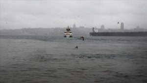 تحول لون البحر إلى البني في بعض أجزاء ساحل منطقة أوسكودار، بالشطر الآسيوي من مدينة إسطنبول، جراء هطل الأمطار الغزيرة.