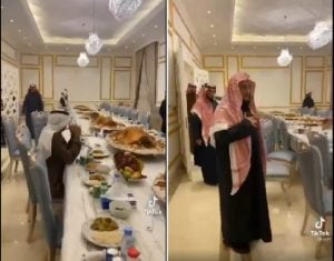 وجذب المقطع انتباه المغردين وأثار الجدل بسبب الوليمة الضخمة التي كانت مكونة من نحو سبعة “مفطحات” بالإضافة إلى أصناف أخرى من الأطعمة.