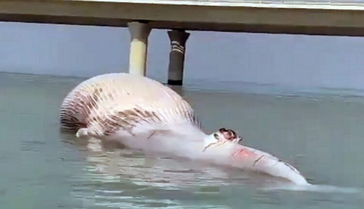 تمكنت السلطات في الكويت من انتشال حوت نافق طوله 35 قدما تقريبا، وذلك بعد ورود بلاغ بوجوده في منطقة الحيشان بالقرب من جسر الشيخ جابر الأحمد.
