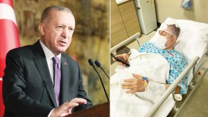 الرئيس أردوغان (يسار) نائب رئيس حزب المستقبل في المستشفى (يمين)