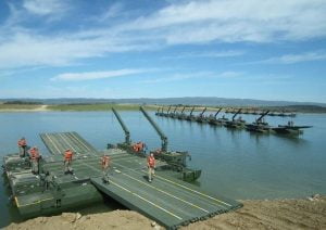ويتم إنشاء الجسر بطول 150 مترًا في حوالي 25 دقيقة، مع 12 نموذج، مما يسمح للمركبات بالمرور بين السواحل.