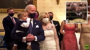 وأظهر فيديو متداول الطفل ذا الثمانية أشهر وهو يرقص على أغنية “Lovely Day” لبيل ويذرز. بين ذراع جده أثناء مشاهدة العائلة حفلا موسيقيا متلفزا من داخل البيت الأبيض.