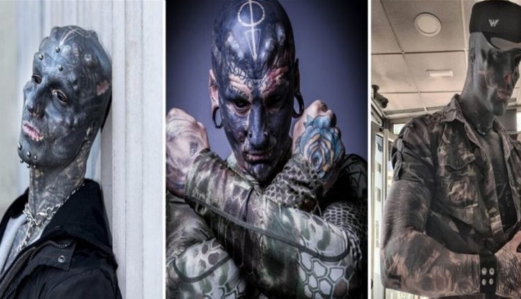 وبحسب صحيفة “ميرور”، يكافح الشاب لجعل نفسه أشبه بكائن فضائي، حيث قام بتعديلات كبيرة على شكل وجهه، بما في ذلك مقلتا عينيه، وغطى نفسه بالوشم ليبدو كأنه كائن أسود من خارج كوكب الأرض.