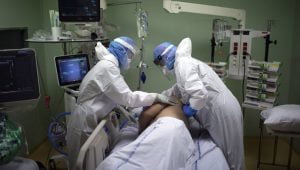 أطباء حول مريض بفيروس كورونا على سرير المستشفى