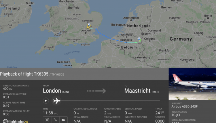 وقال متحدث باسم مطار لندن ستانستيد إن الطائرة غادرت في الأصل من كينيا إلى تركيا. ثم إلى ستانستيد قبل التوجه إلى ماستريخت.
