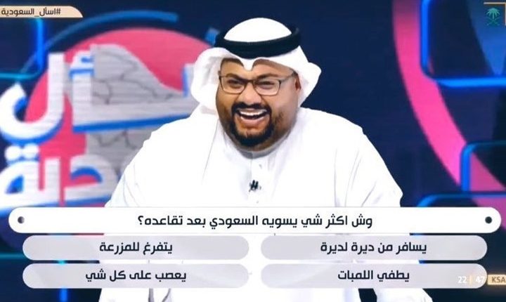 وطرح البرنامج على المشاركين أسئلة من قبيل “ماذا يفعل السعودي بعد تقاعده”، و”ما هي أكثر الأماكن التي تفضلها النساء”. وتمت كتابتها باللهجة المحلية.